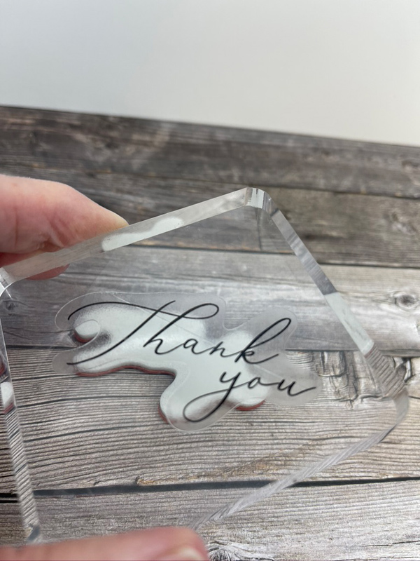 Carefully pull the entire stamp off the block and this is what it will look like, perfectly lined up with none of the clear sticker hanging off the edges.