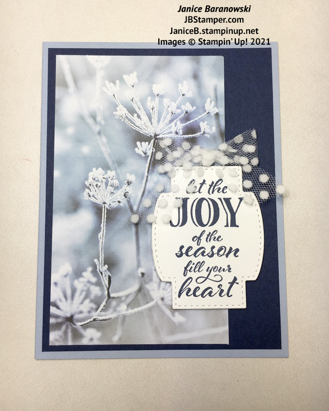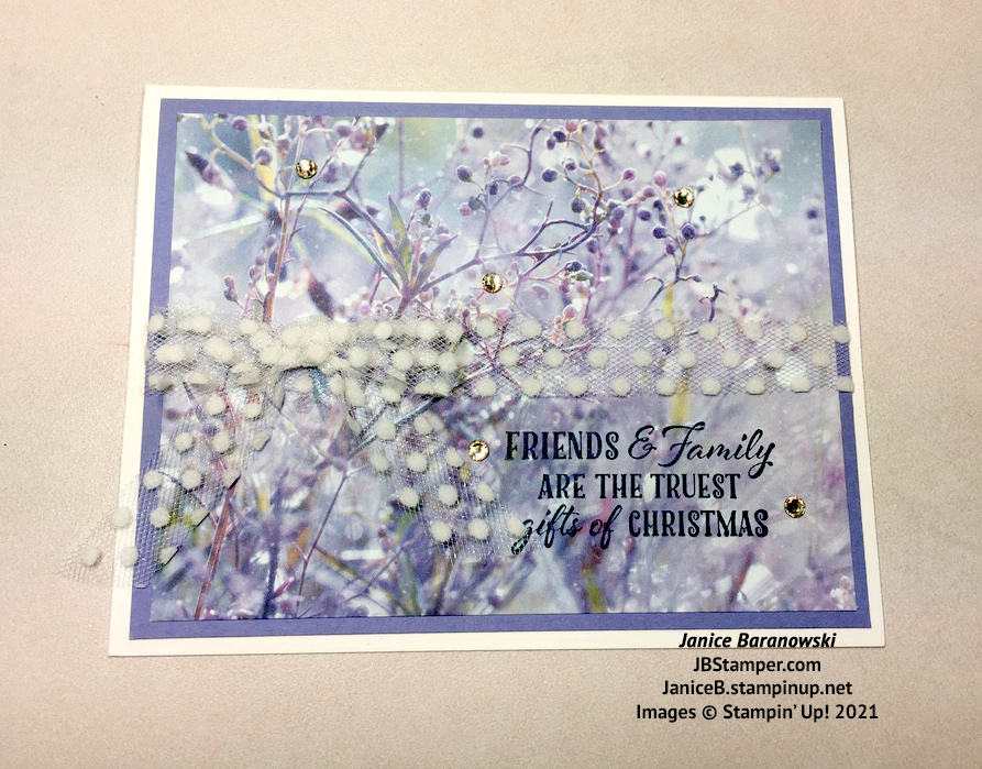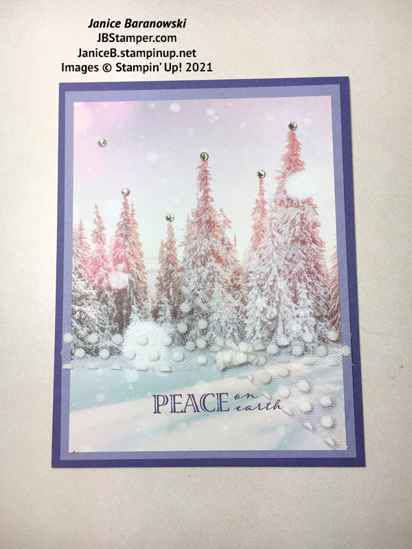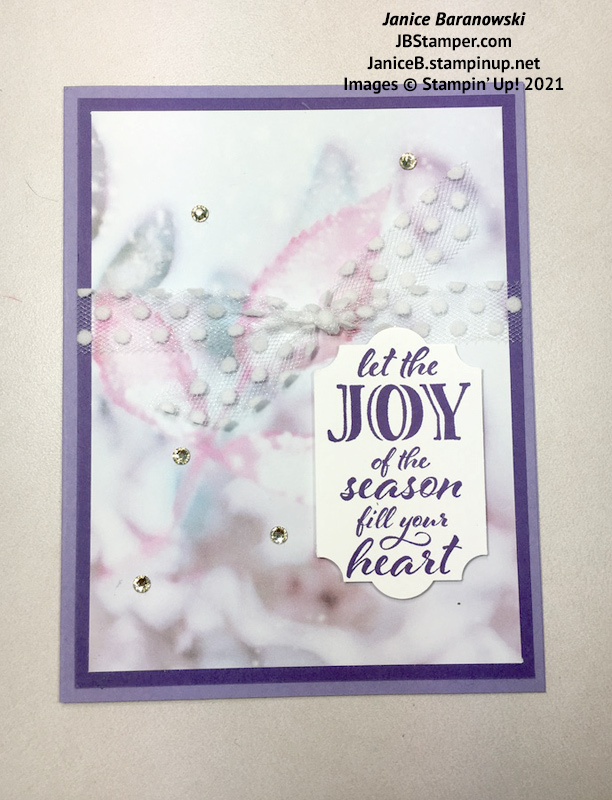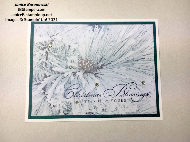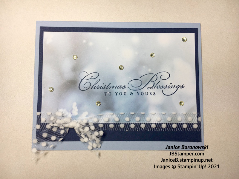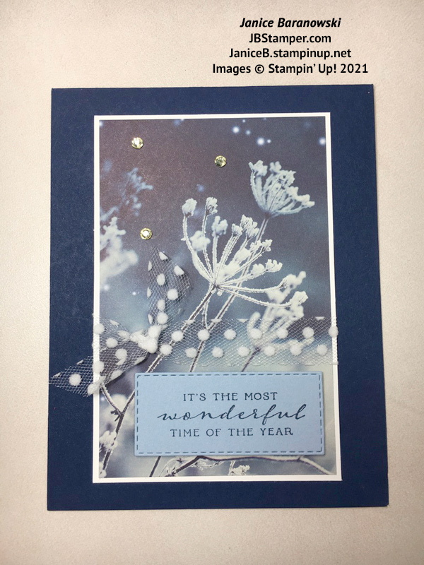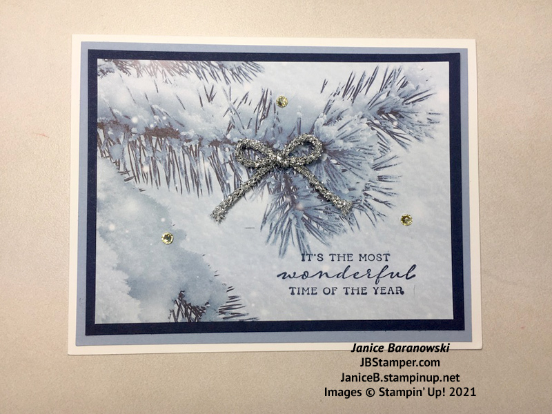 I used the Feels Like Frost DSP that carried over from last year’s Christmas catalog. I’d make a few cards with it last year, but had plenty left to create some more. Many people overlooked this DSP in last year’s catalog, including me. The catalog didn’t do justice to this incredible paper! Unfortunately it retired January 4, but I have more so I may make some winter birthday cards next.