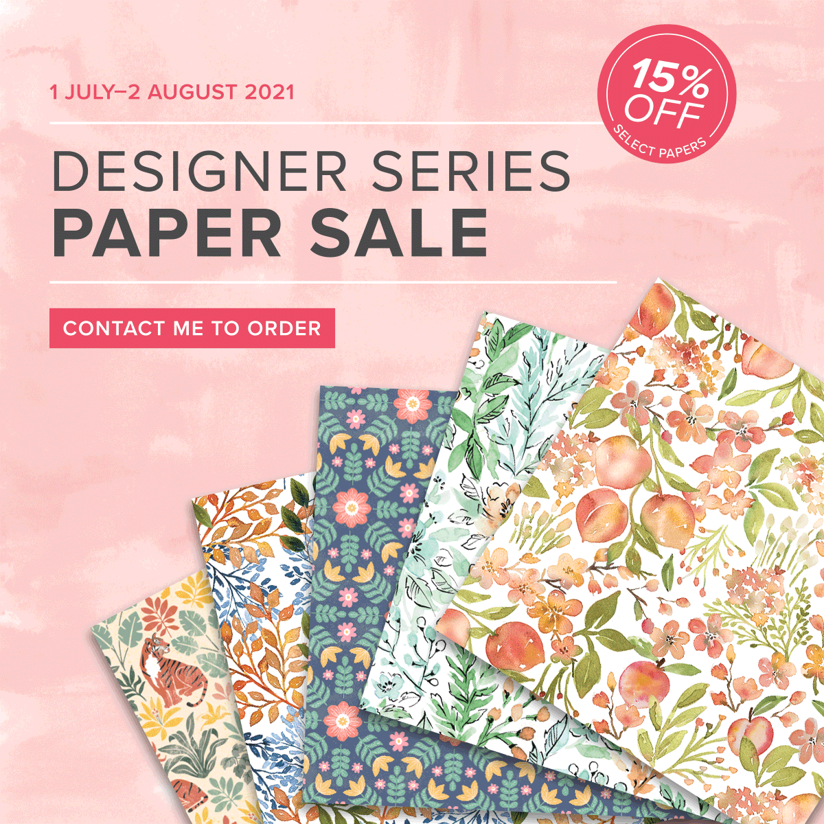 Don’t miss the chance to get 15% off selected Stampin’ Up! Designer Series Papers.
